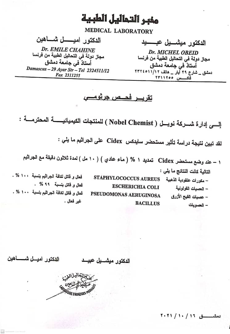 لم تقتصر شركة نوبل كيمست على المنتجات الطبيعية فقط بل أنتجت مجموعة من المعقمات الكيميائية .