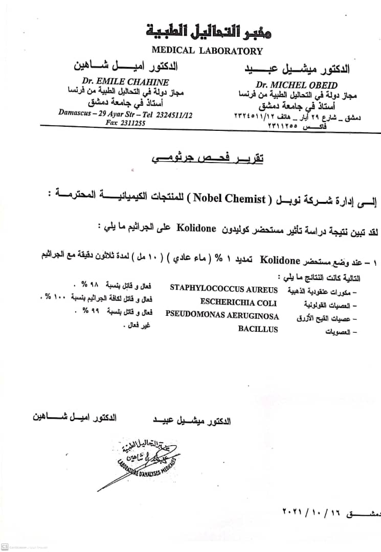 لم تقتصر شركة نوبل كيمست على المنتجات الطبيعية فقط بل أنتجت مجموعة من المعقمات الكيميائية للقطاع البيطري.